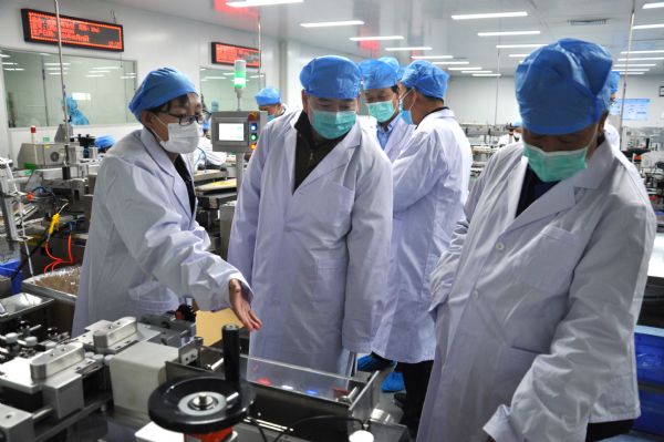 張嚴明一行走進生產車間,詳細了解防控措施落實、生產運行等情況。公司黨委委員、常務副總經理宋敏平匯報:普安公司依靠甘肅特藥資源優勢生產宣肺止嗽合劑,產品已覆蓋26個省市,單品種銷售收入近3億元。2019年8月1日公司劃轉省藥業集團,今年已啟動宣肺止嗽合劑二期擴產改造項目,預計第三季度完成建設。公司按照中央、省委、省政府的決策部署,一手抓疫情防控、一手抓復工復產,已生產75%醫用酒精48噸,全部統一調配使用;同時,公司捐贈了75%醫用酒精5噸多、宣肺止嗽合劑6700瓶。在聽宋敏平關于公司有關工作匯報后,張嚴明對企業疫情防控、復工復產和政策落實等工作給予了充分肯定,對企業員工的辛勤付出表示感謝。