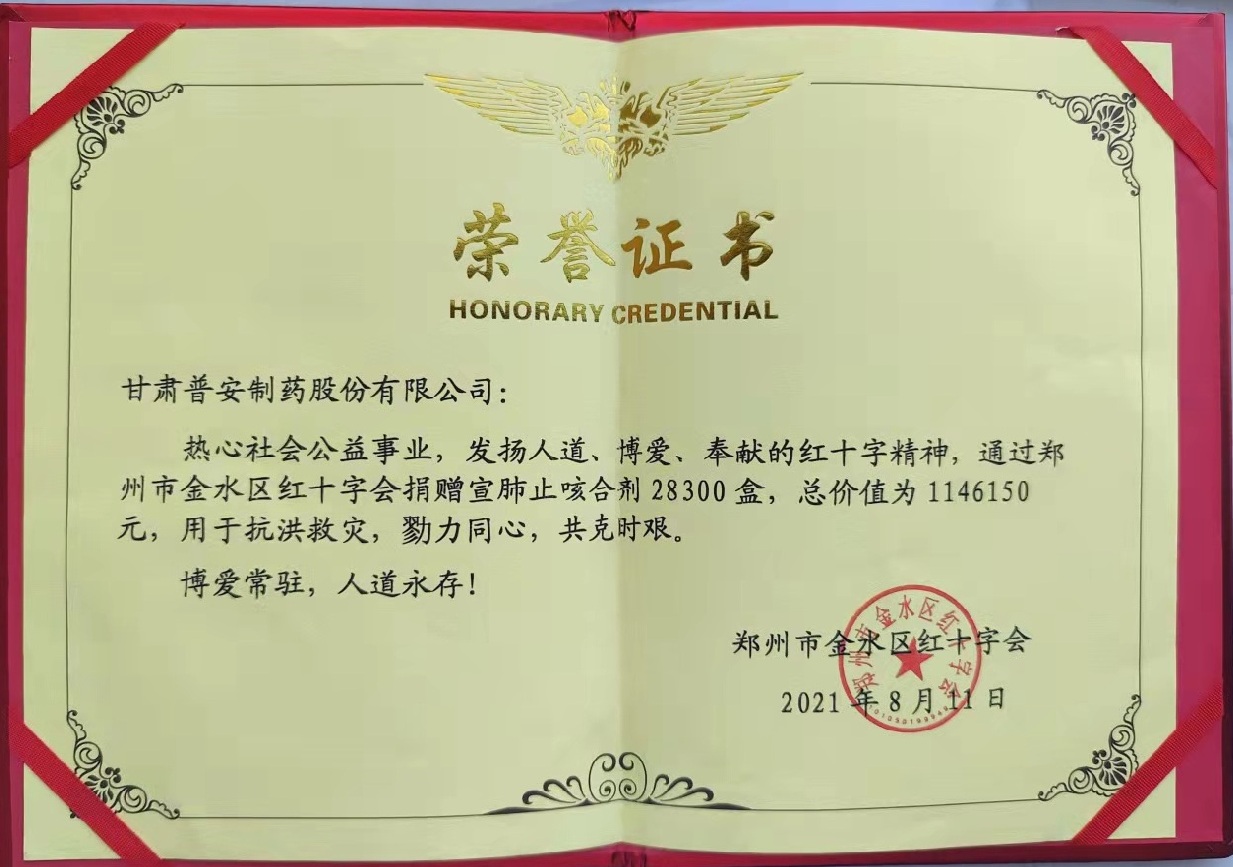 普安制藥始終不忘攜手互助,共克時艱的擔當。在鄭州面臨暴雨災情、疫情雙重挑戰下,普安制藥捐贈價值114.6萬元的抗疫物資用于鄭州災后防疫工作,用實際行動彰顯“一方有難,八方支援”的溫情和愛心。