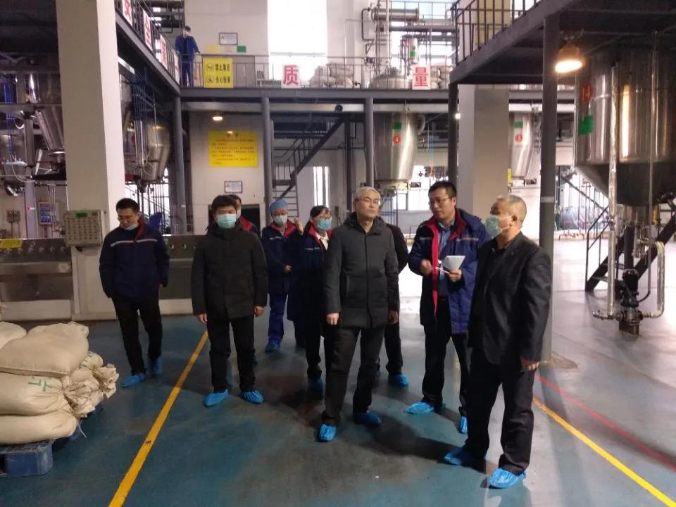 竇生銘一行到公司前處理車間、提取車間、外包車間等生產現場進行查看,詳細了解公司安全生產管理、設備設施運行、消防設施配置、崗位安全操作等情況。