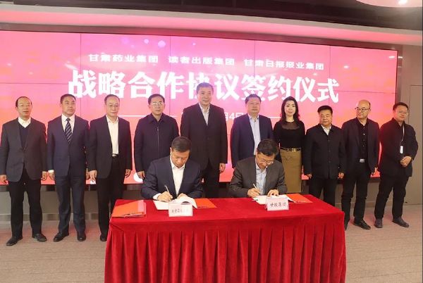 甘肅藥業集團和讀者出版集團有限公司、甘肅日報報業集團有限責任公司在甘肅新媒體集團舉行戰略合作簽約儀式,竇生銘代表集團公司簽署協議。