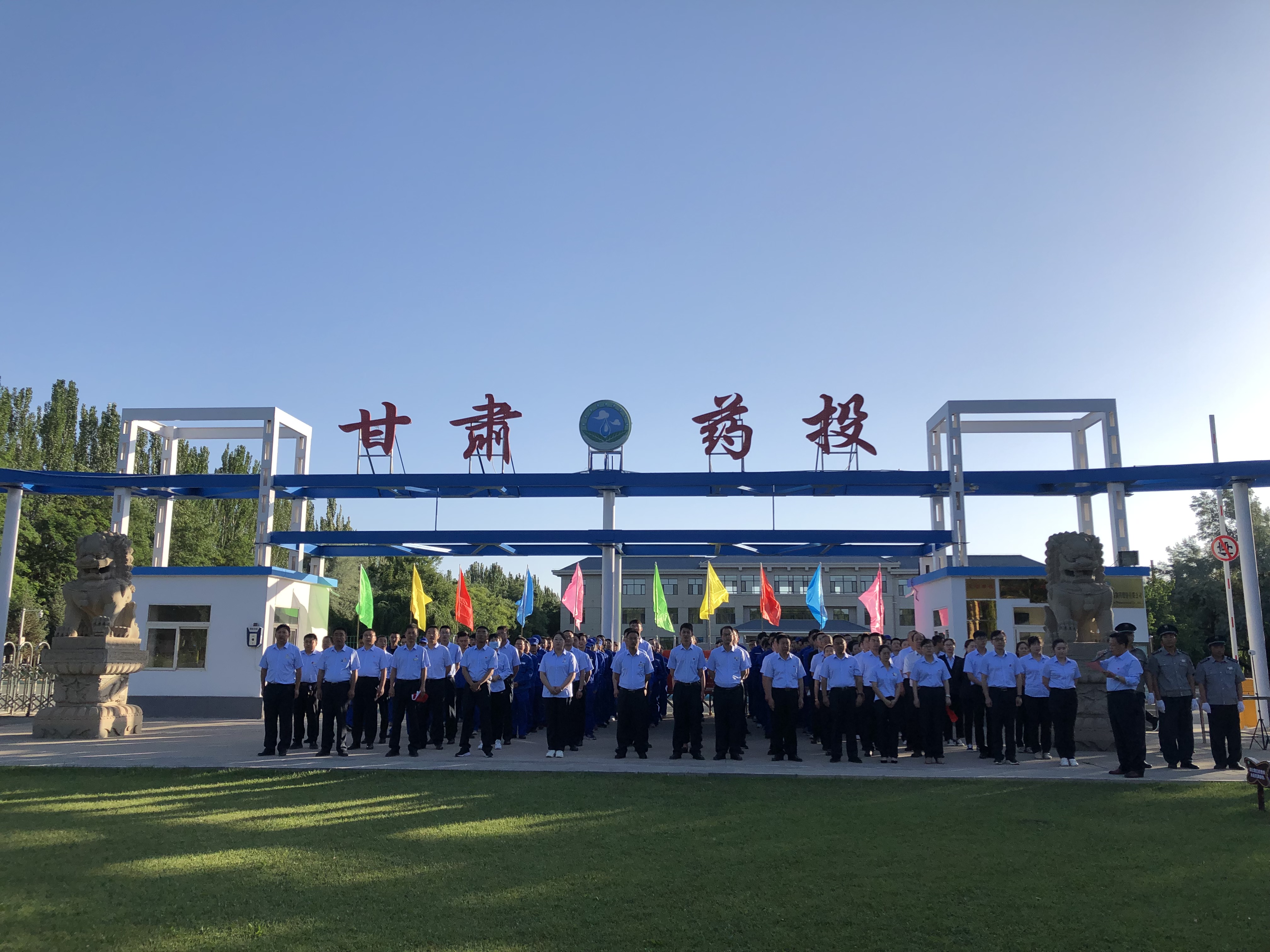 7月1日早7點15分,迎著初升的朝陽,甘肅普安制藥股份有限公司在廠區大門口前舉行了升國旗與重溫入黨誓詞儀式。
