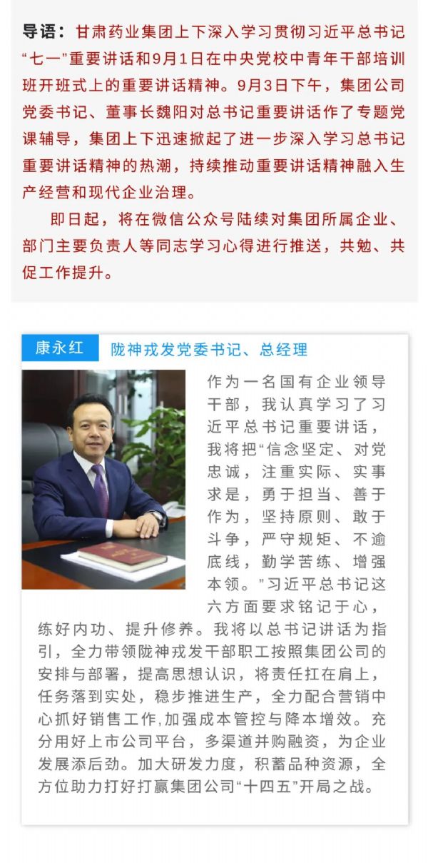 領會總書記重要講話,甘肅藥業人這樣說……(一)