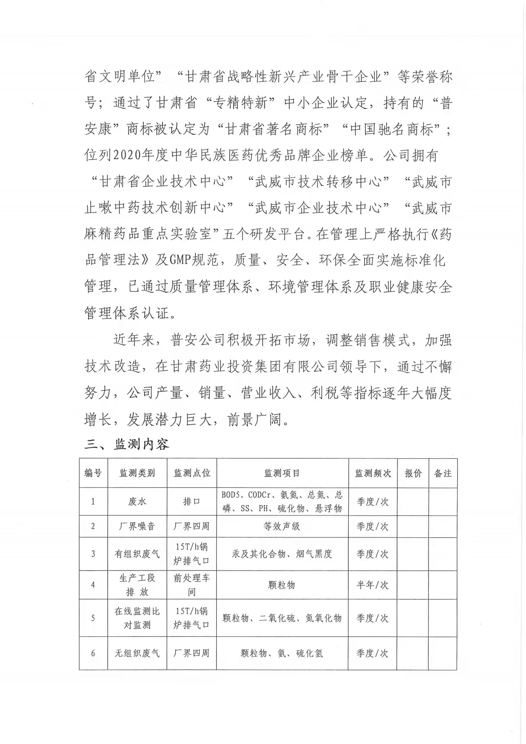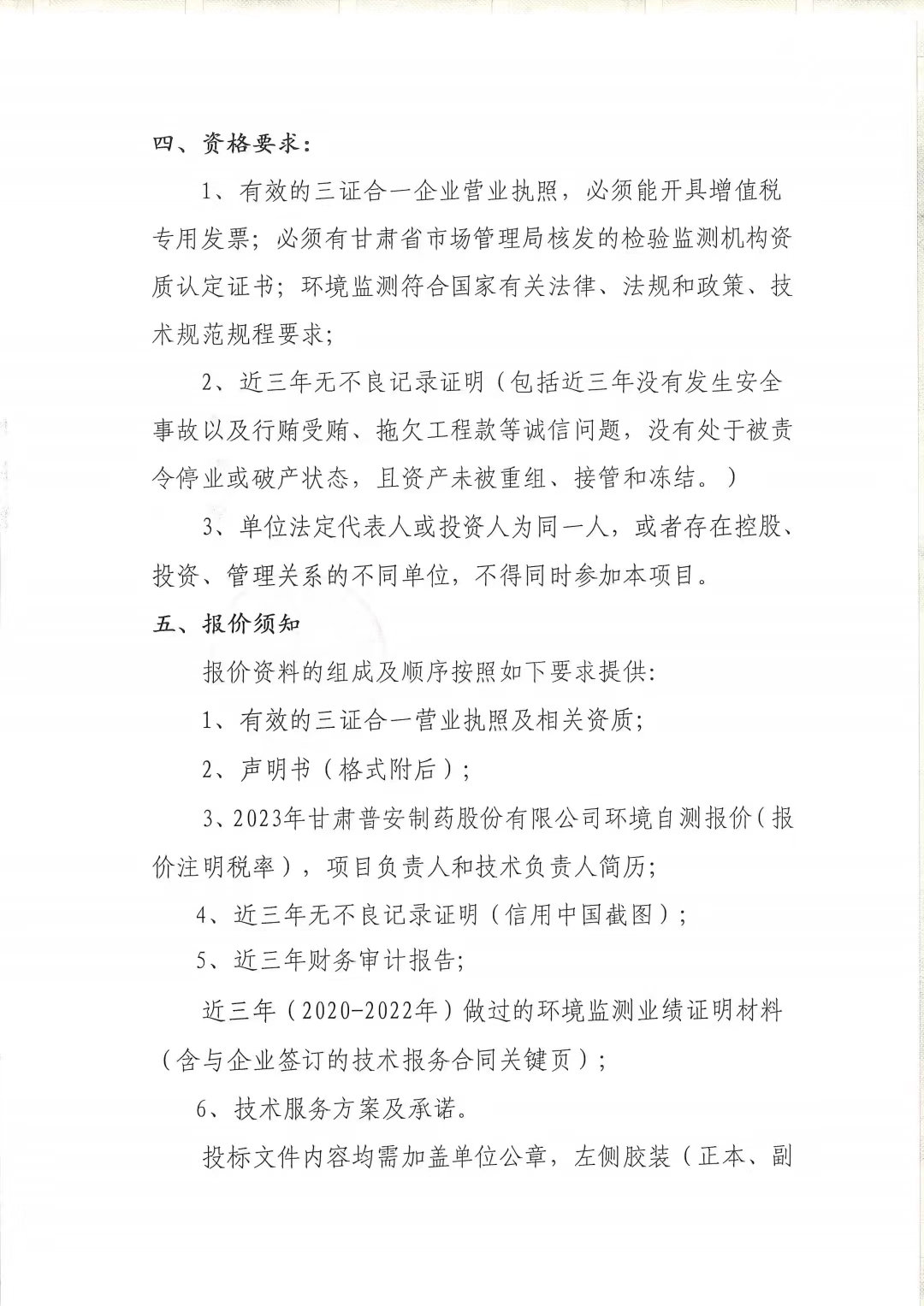 甘肅普安制藥股份有限公司2023年度環境自測第三方委托招標公告