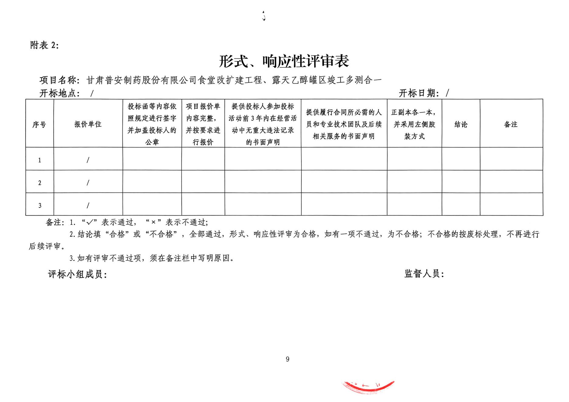 甘肅普安制藥股份有限公司食堂改擴建工程、露天乙醇罐區多測合一服務招標公告