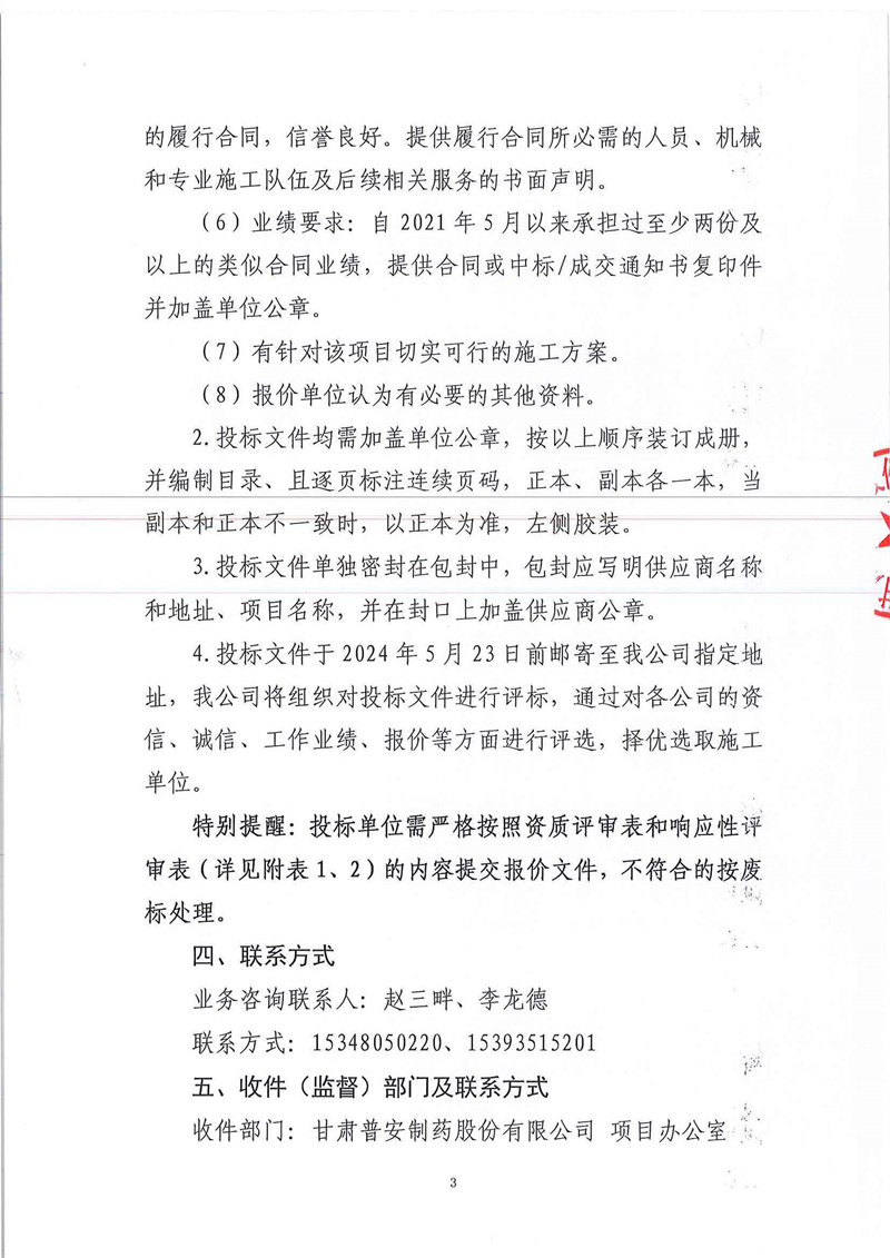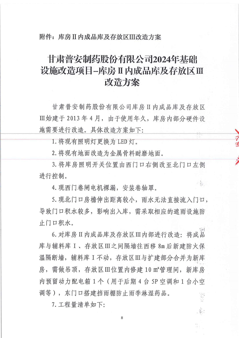 甘肅普安制藥股份有限公司2024年基礎(chǔ)設(shè)施改造項目-庫房Ⅱ內(nèi)成品庫及存放區(qū)Ⅲ改造工程施工招標(biāo)公告