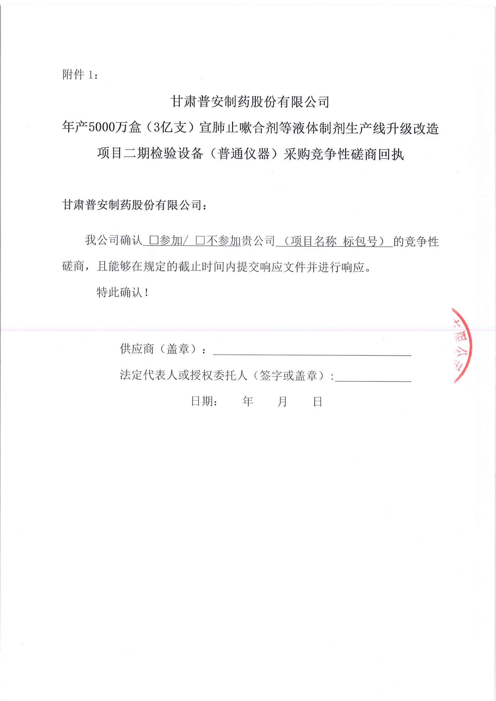 甘肅普安制藥股份有限公司年產5000萬盒(3億支)宣肺止嗽合劑等液體制劑生產線升級改造項目二期檢驗設備(普通儀器)采購競爭性磋商公告